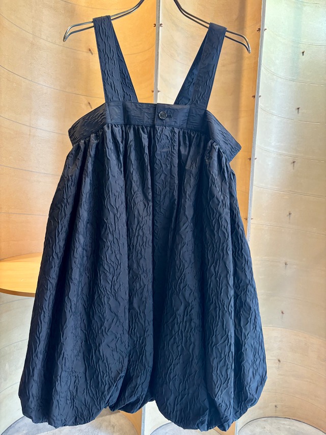 3Q-U002-051 黒 Sサイズ 表地 ポリエステル75%ナイロン25% 裏地キュプラ100% Sサイズ 総丈92㎝ 胸回り96㎝ 肩紐丈21㎝ 魅力的なシルエットのnoir kei ninomiya膨れ織吊りバルーンパンツは、独自の膨れ織り生地を使用しており、立体感のある豊かな表情が特徴です。このパンツは、ゆったりとしたバルーンシルエットが体型を美しくカバーし、リラックスした着用感を実現します。