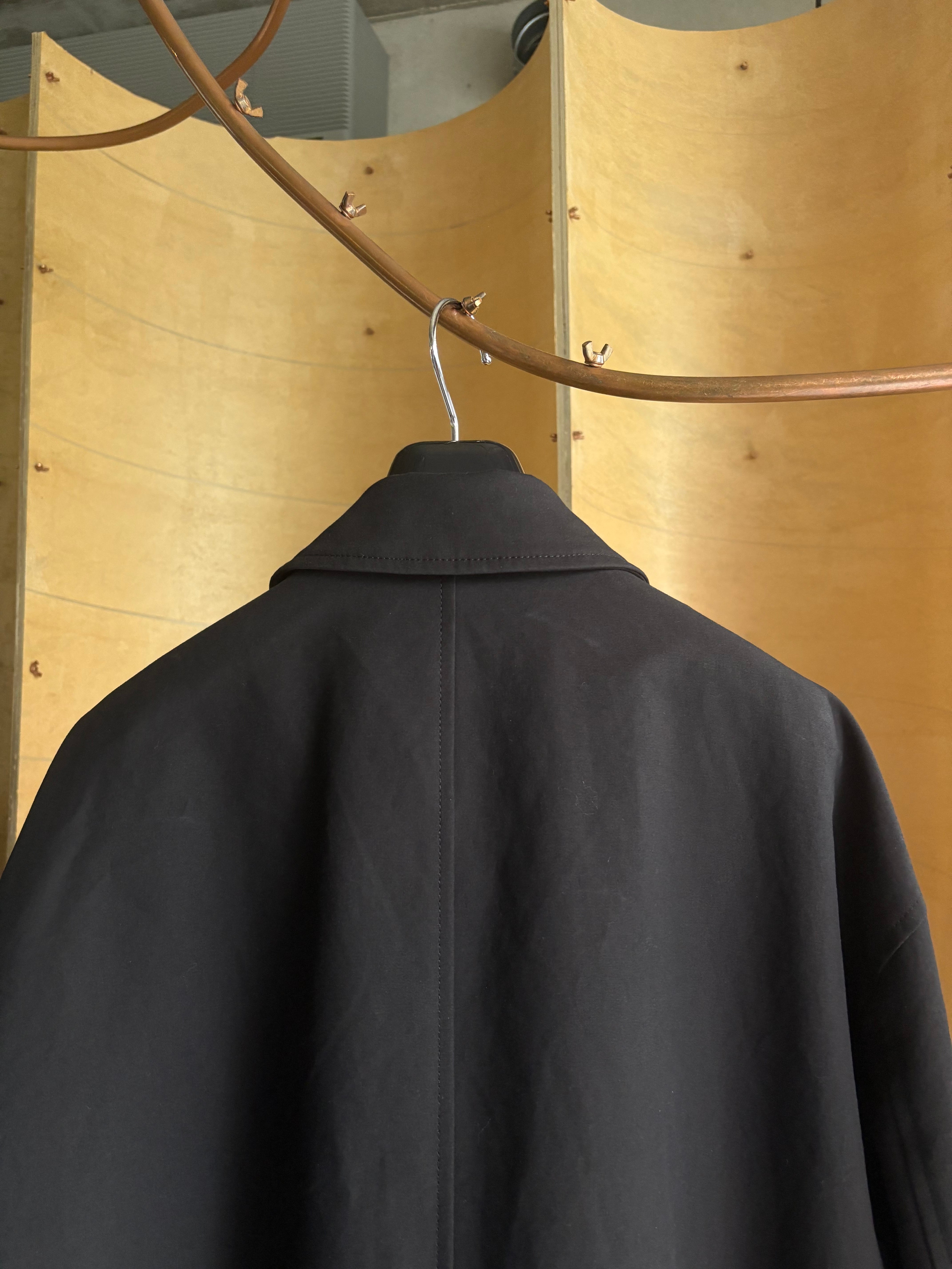 二重織のコットンウェザー生地を使ったステンカラーコートです。