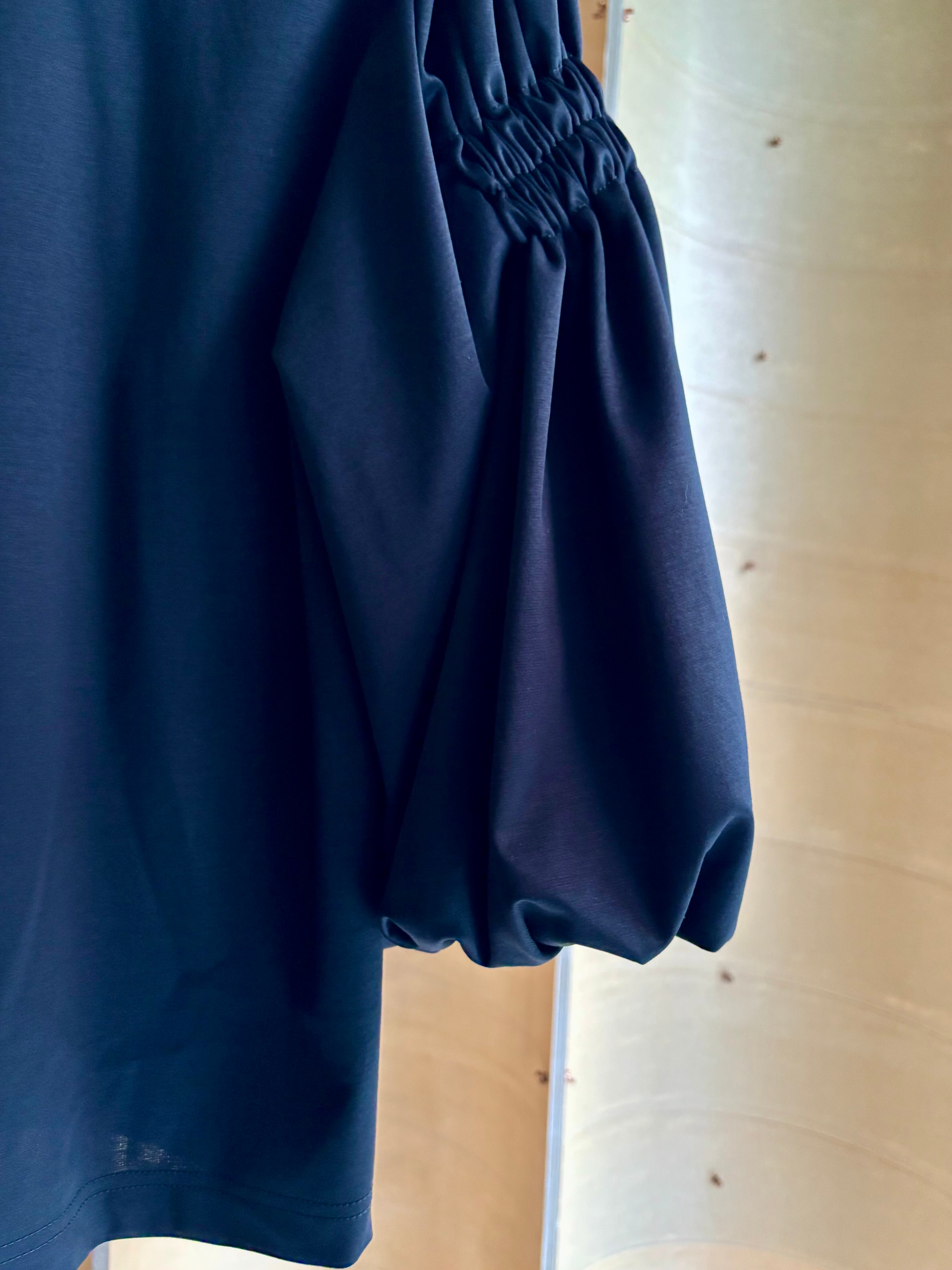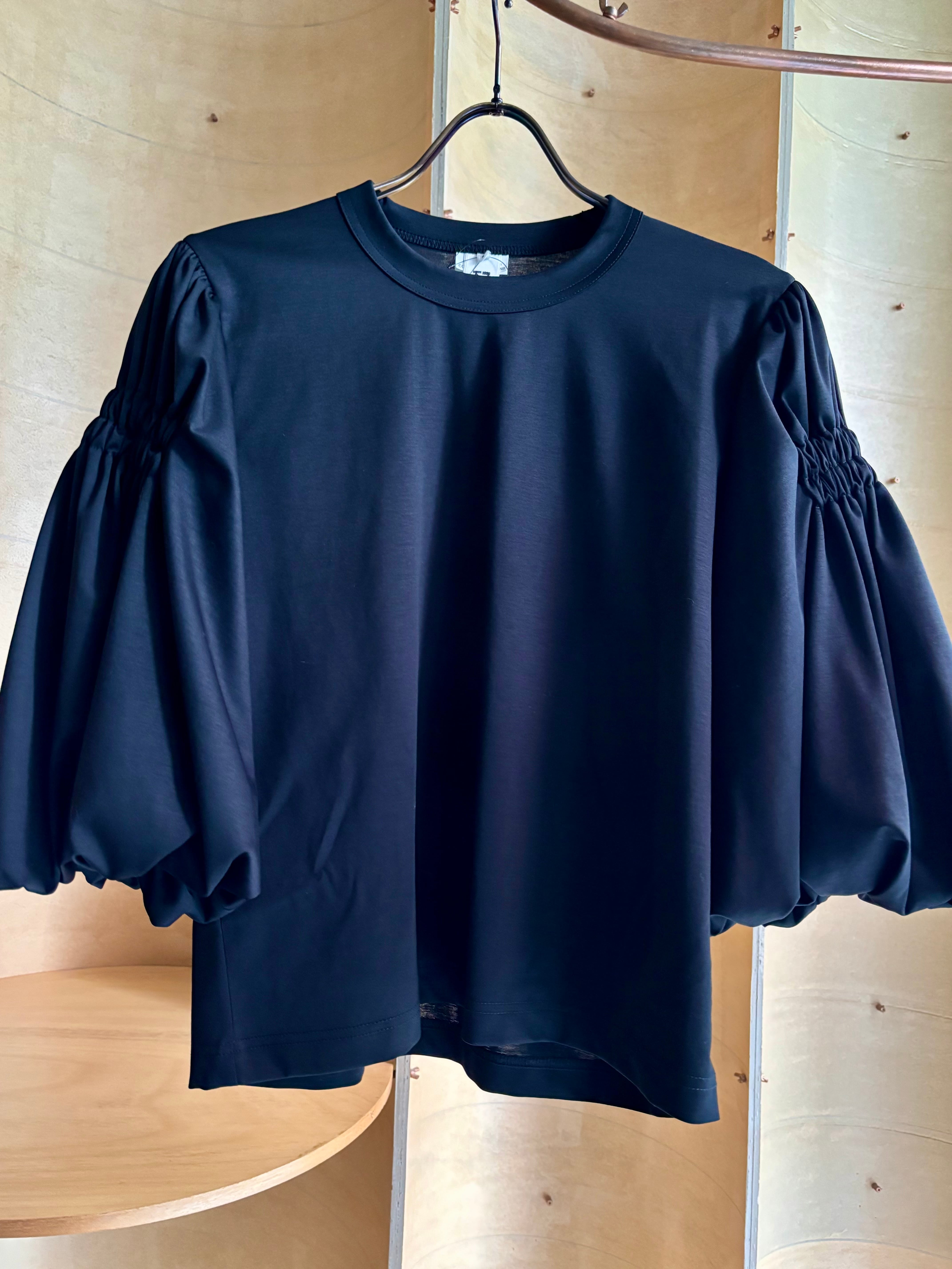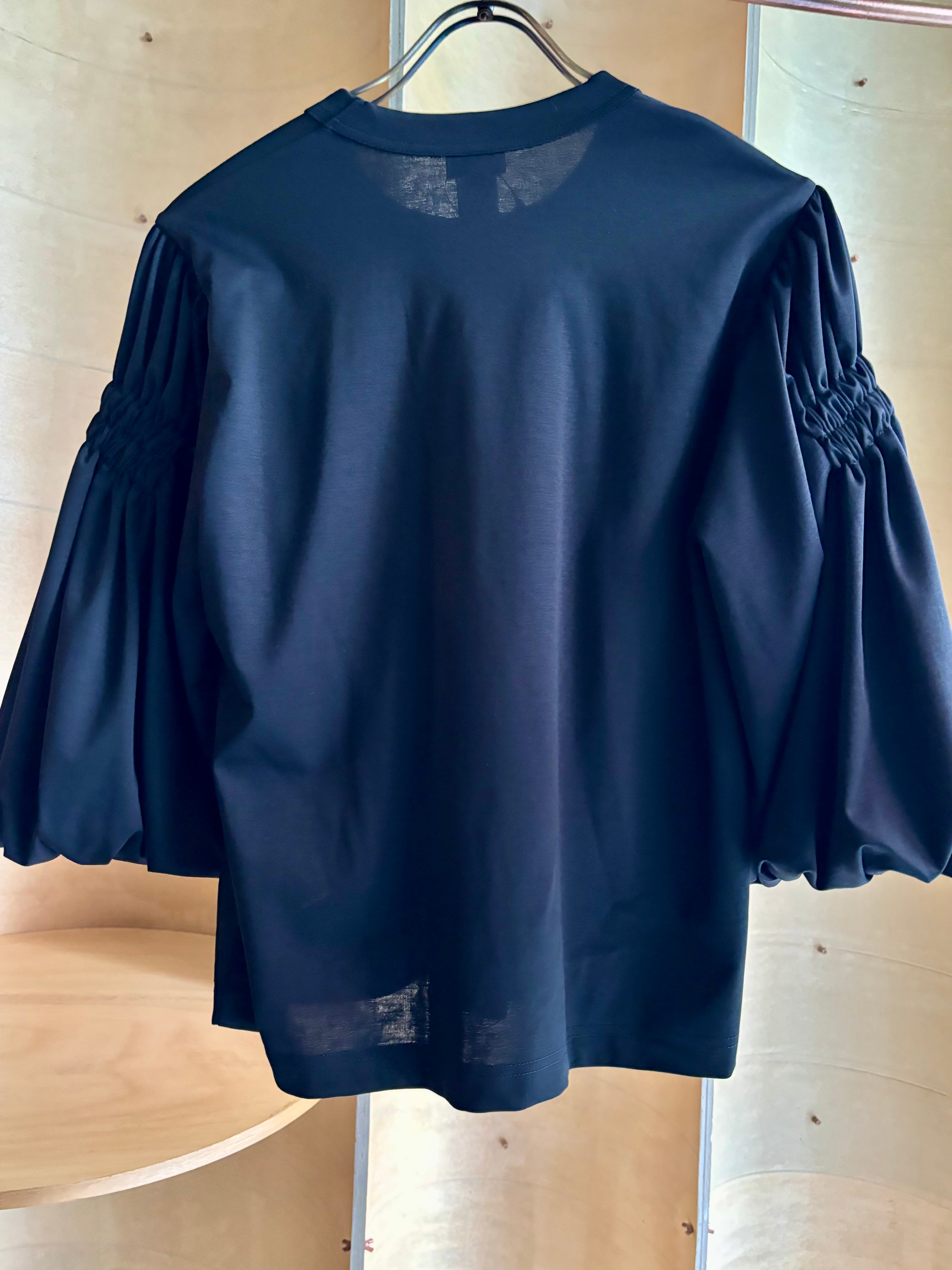 袖バルーンのデザインが特徴的な綿ポンチ七分袖カットソーです。