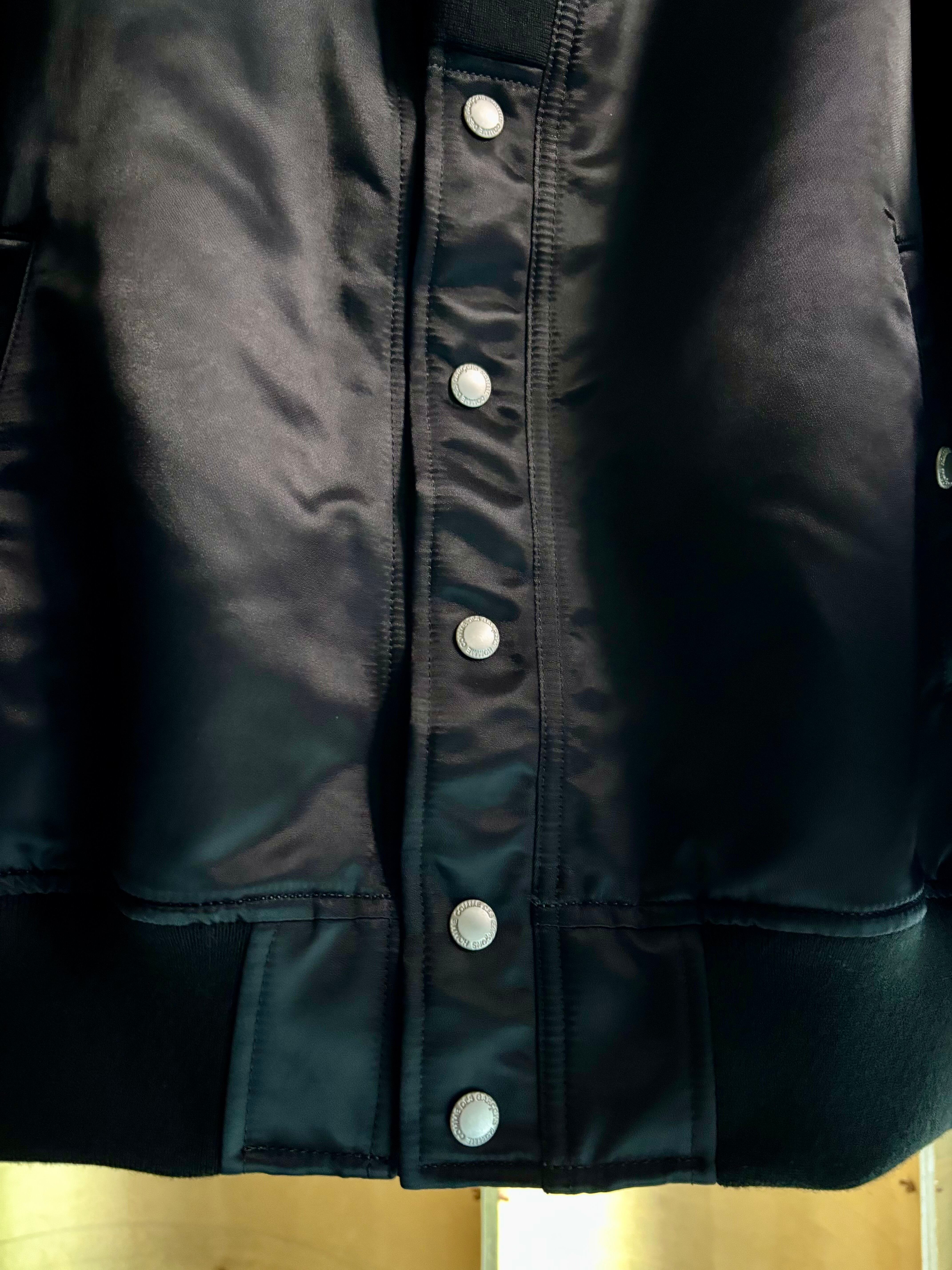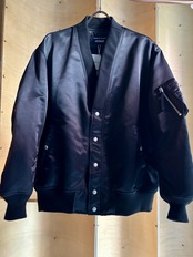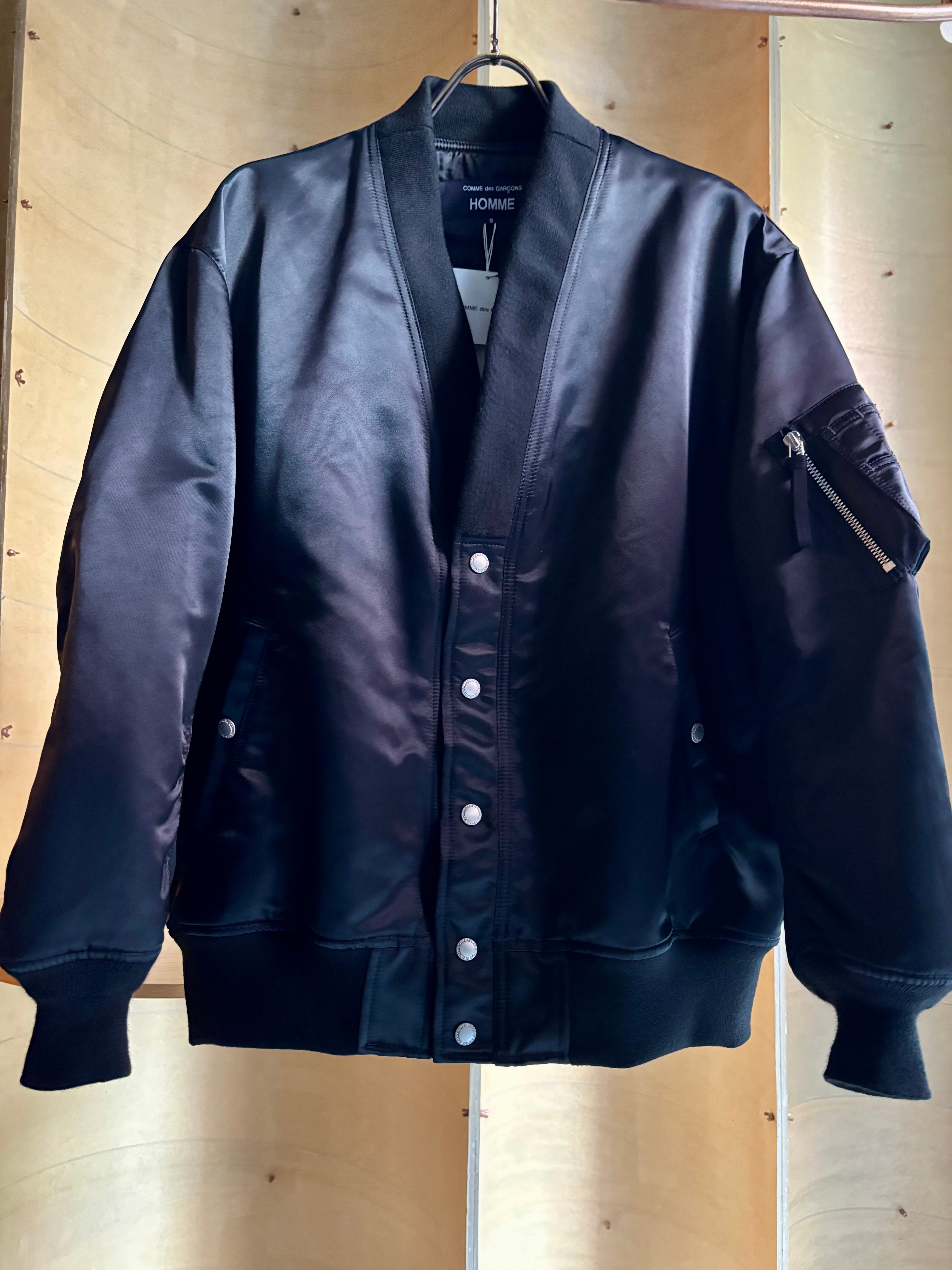 ミニタリージャケットMA-1スタイルのCOMME des GARCONS HOMMEコットンナイロンツイルブルゾンです。上質なコットンとナイロンを使用し、耐久性と快適さを両立させた作りになっています。カジュアルなスタイルからラギッドなスタイルまで幅広く対応可能です。シンプルなボトムスと組み合わせることで、洗練された印象を与える一着です。