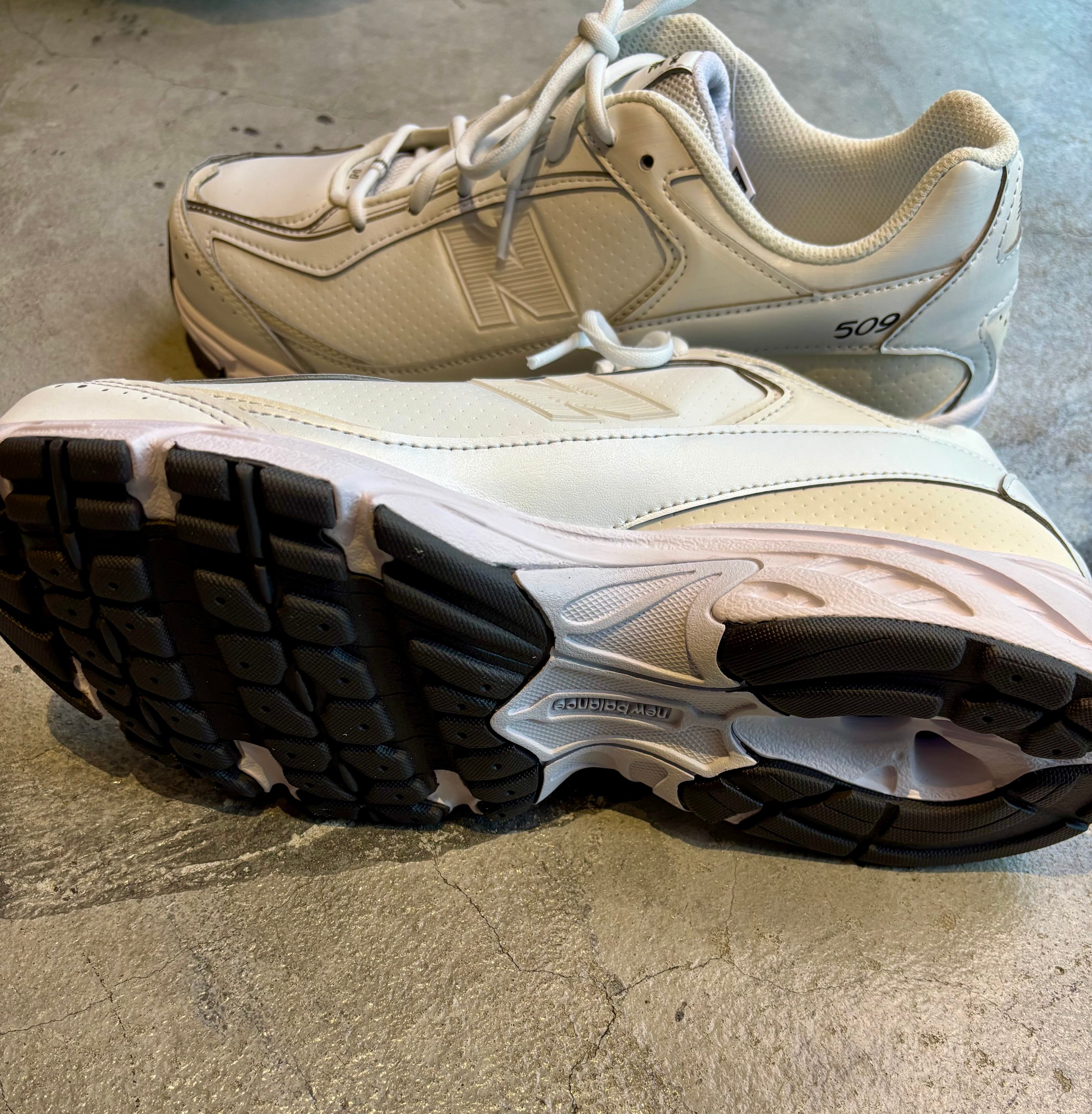 「509」は日常のさまざまなシーンになじむライフスタイルモデル。シンプルでスリムなアッパーデザインに、衝撃吸収性と反発弾性に優れたABZORBミッドソールを採用し、クッション性をサポートします。今回のコラボレーションでは、アッパーパーツの一部を排除してミニマルさを追求した特別仕様のデザイン。シュータンに配したCOMME des GARÇONS HOMME ロゴ、インソールのダブルネームロゴ、カスタムシューズボックスが、特別なコラボレーションを象徴しています。