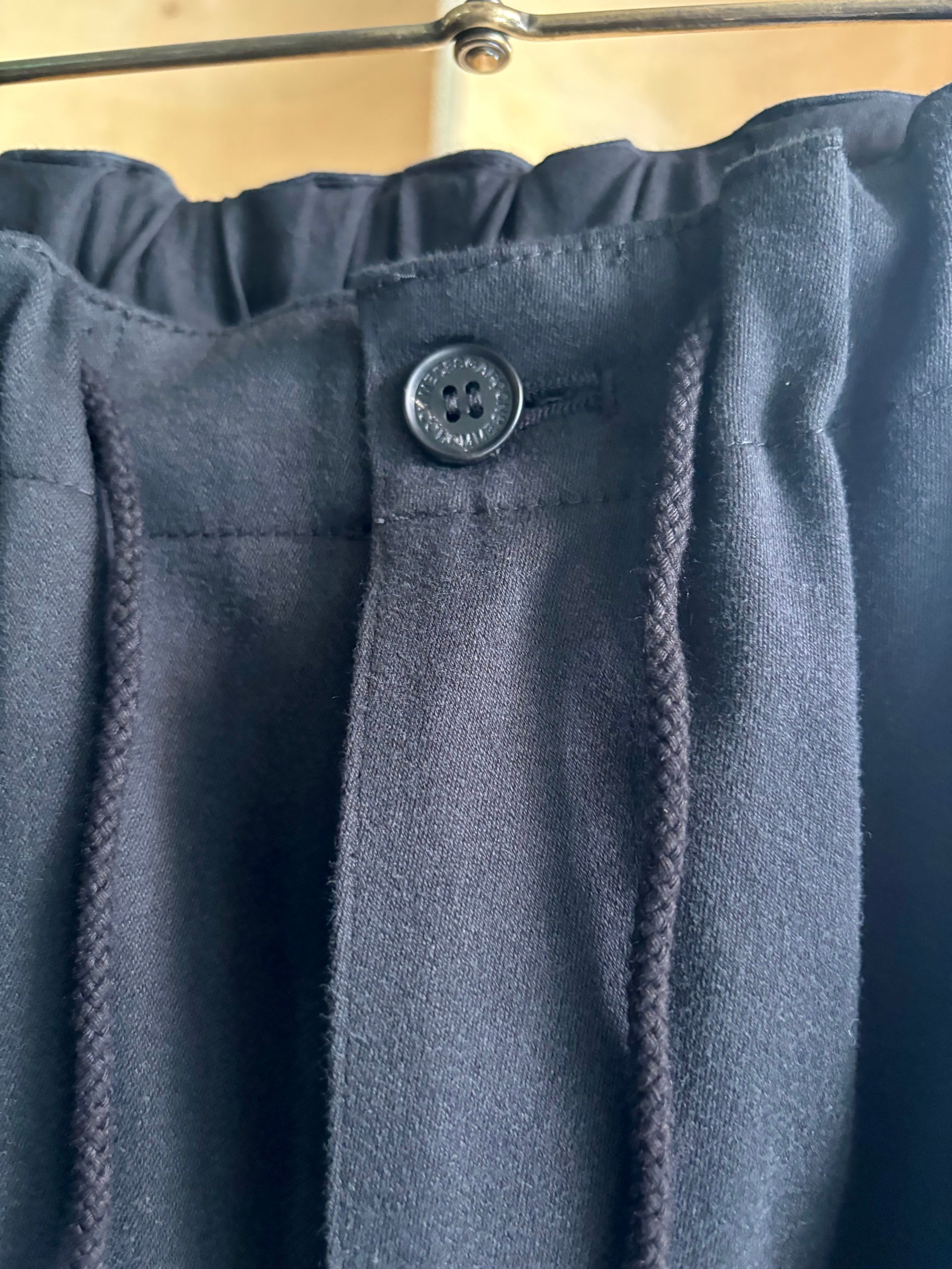 生地にコットンツイルを使用したパンツはウエストがドローコード仕様となったイージーパンツタイプのデザインです。