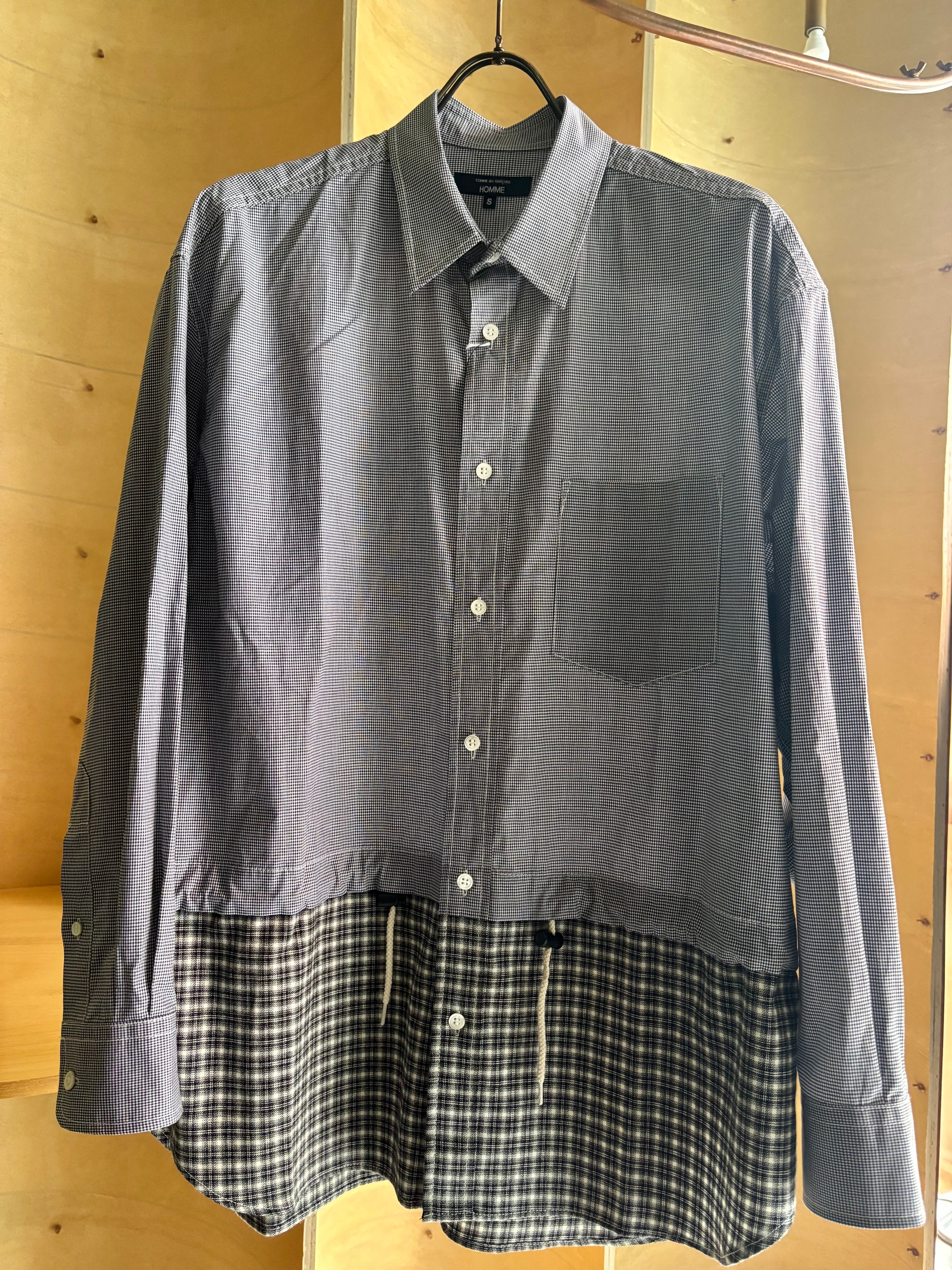 このシャツは、独特な2トーンチェック柄が目を引くデザインです。