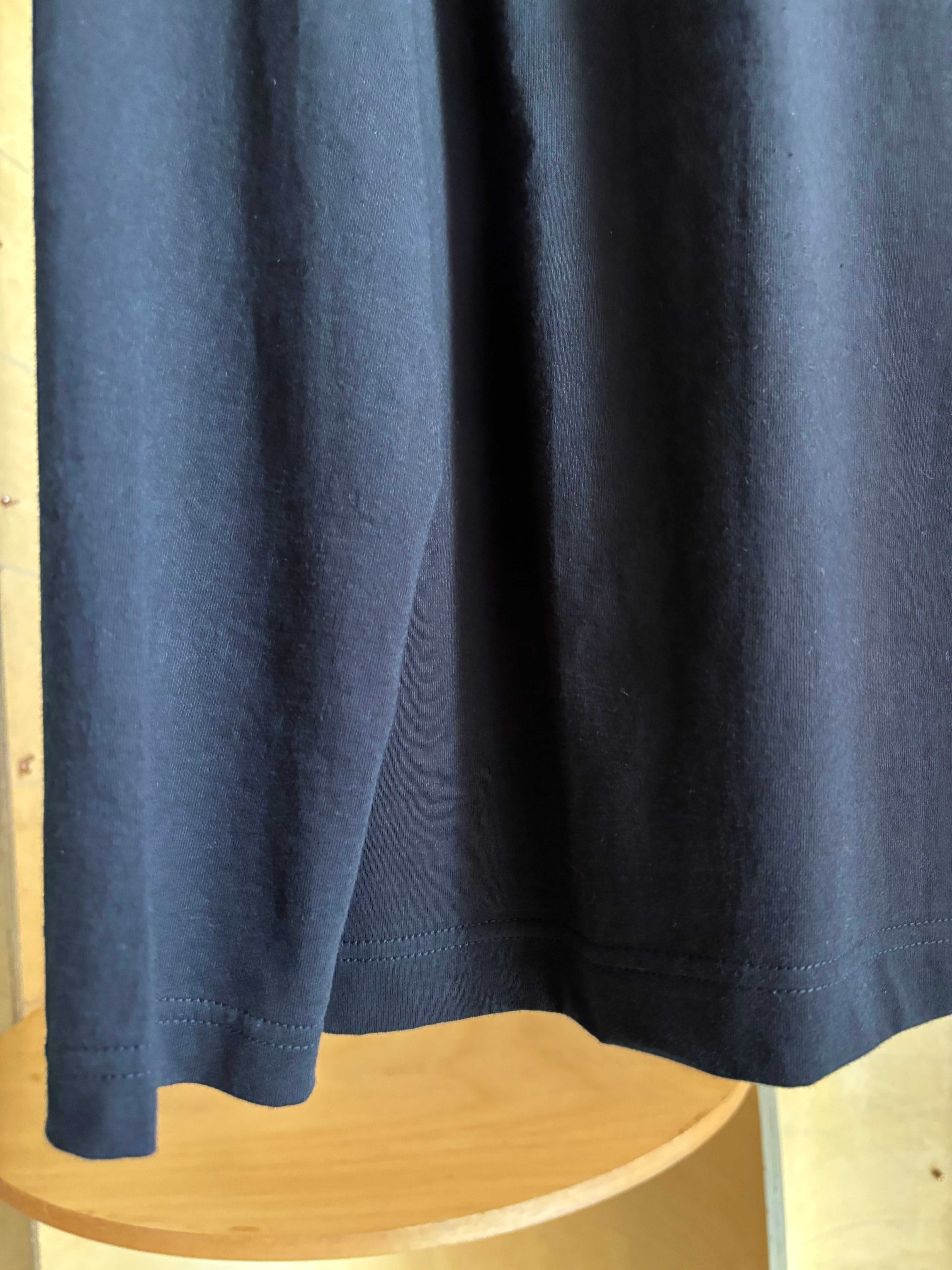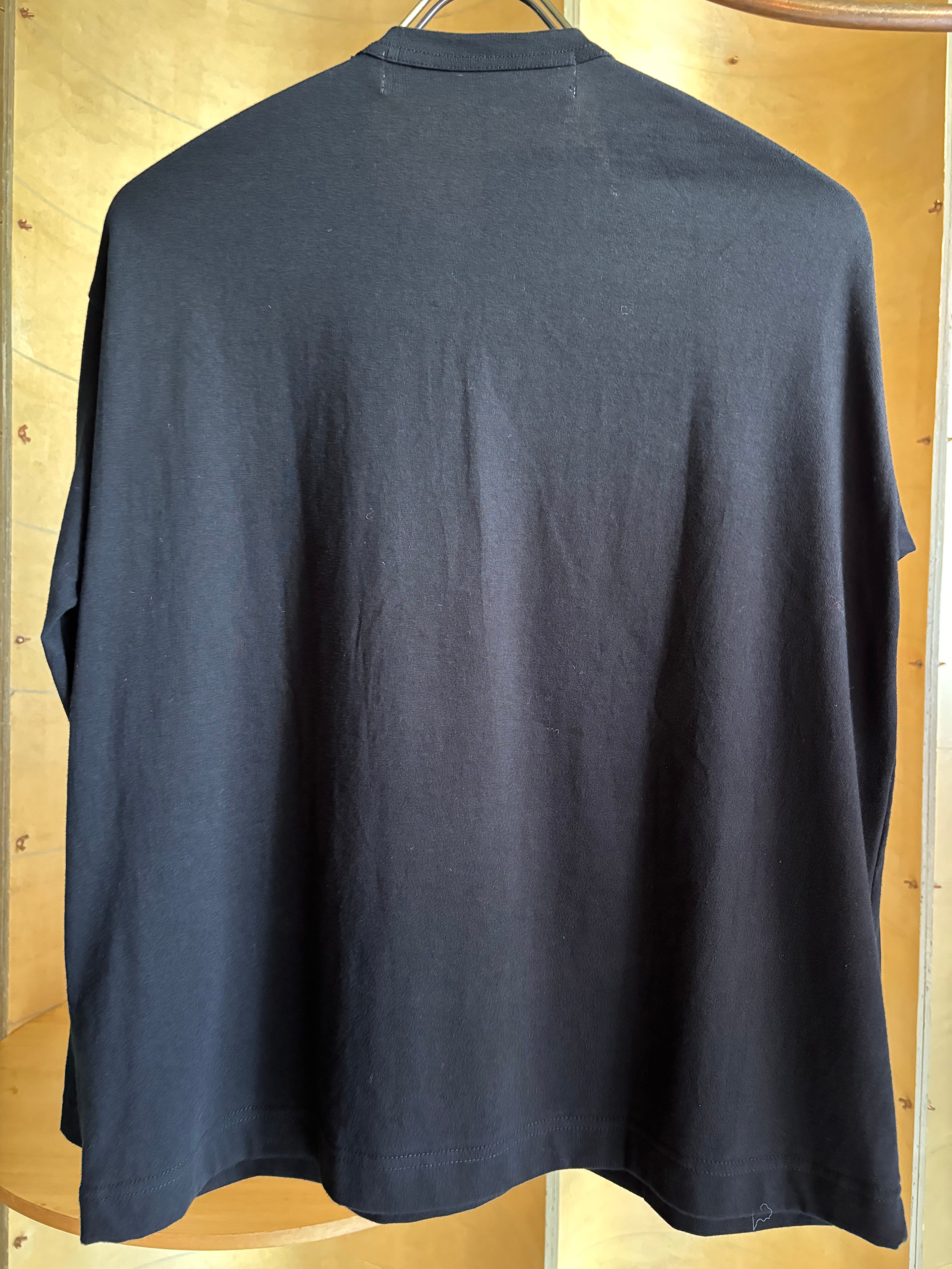 シンプルなクルーネックの長袖Tシャツをベースに、