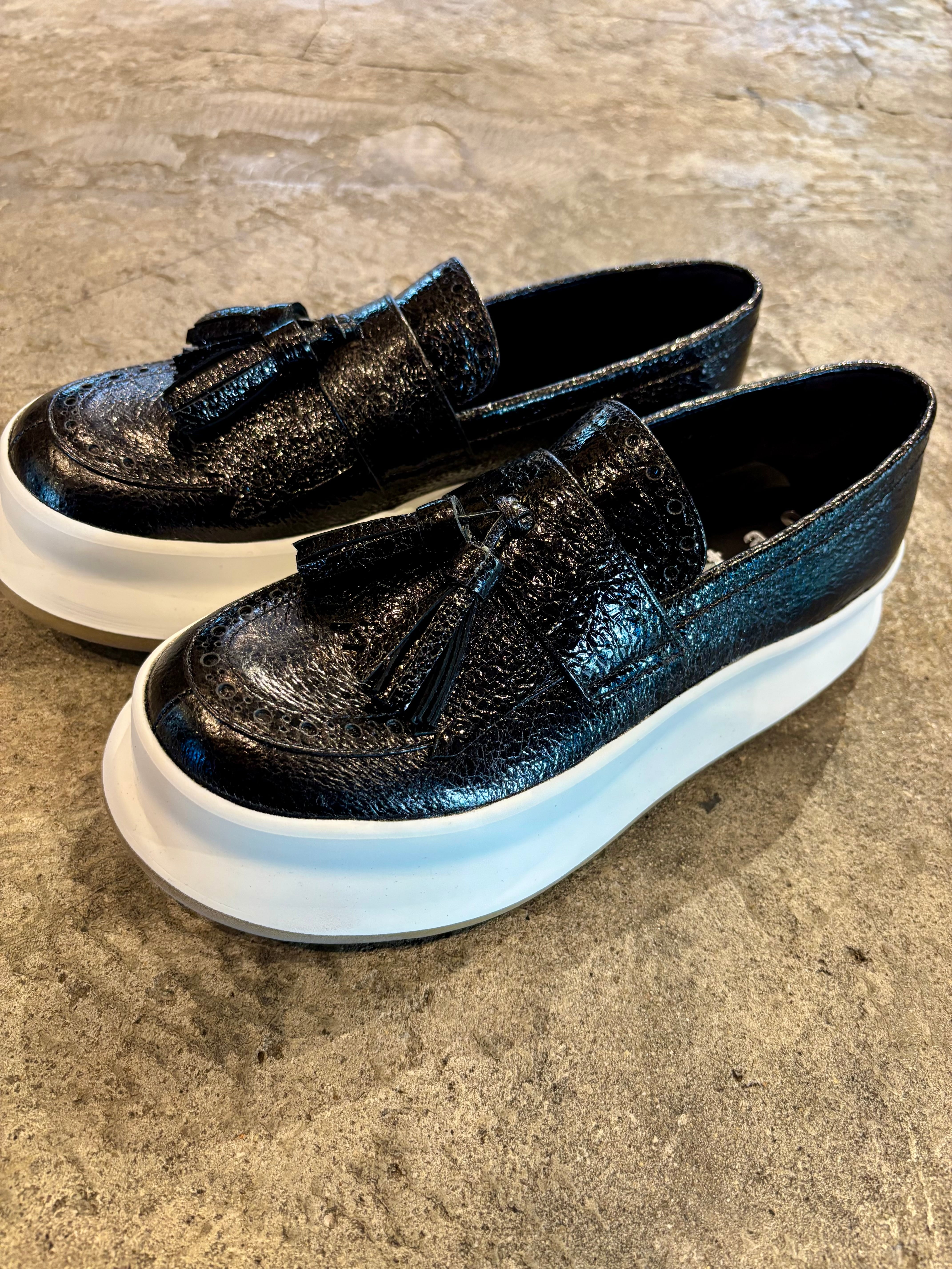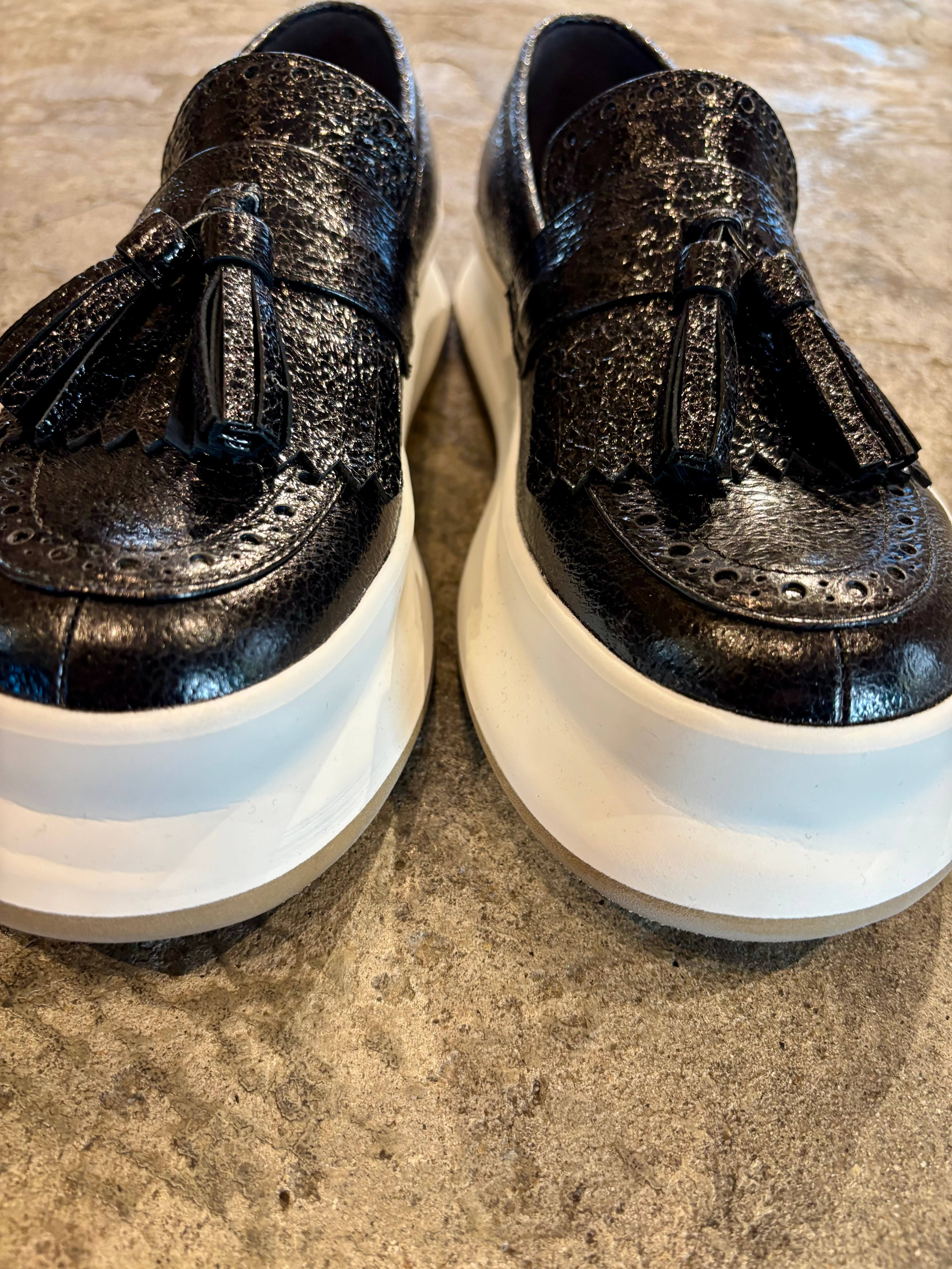革新的なデザインの厚底スリッポンは、合成皮革を使用しており、高い耐久性とお手入れのしやすさが特徴です。軽量で歩きやすくあらゆるシーンでの快適な履き心地を提供します。
