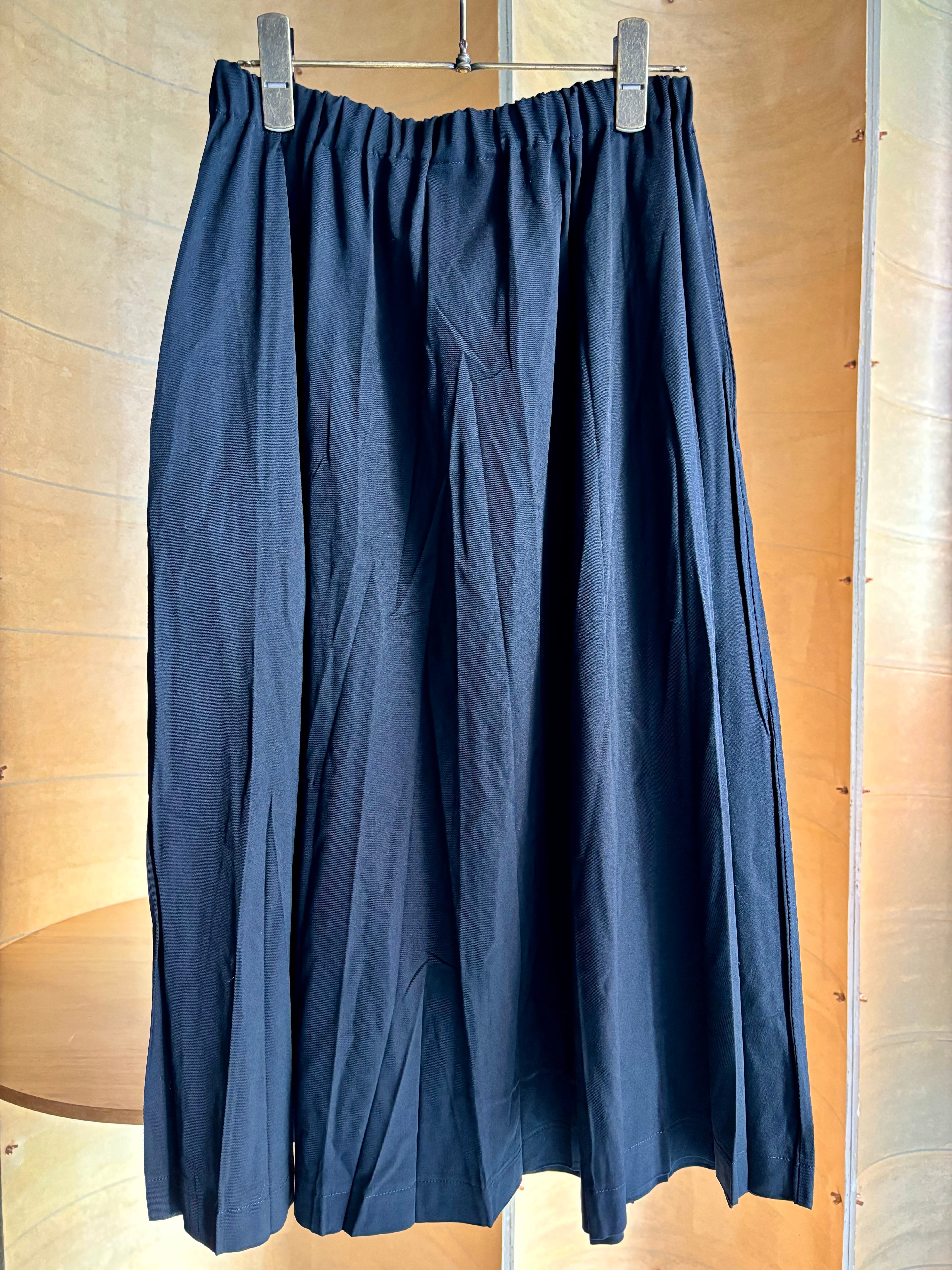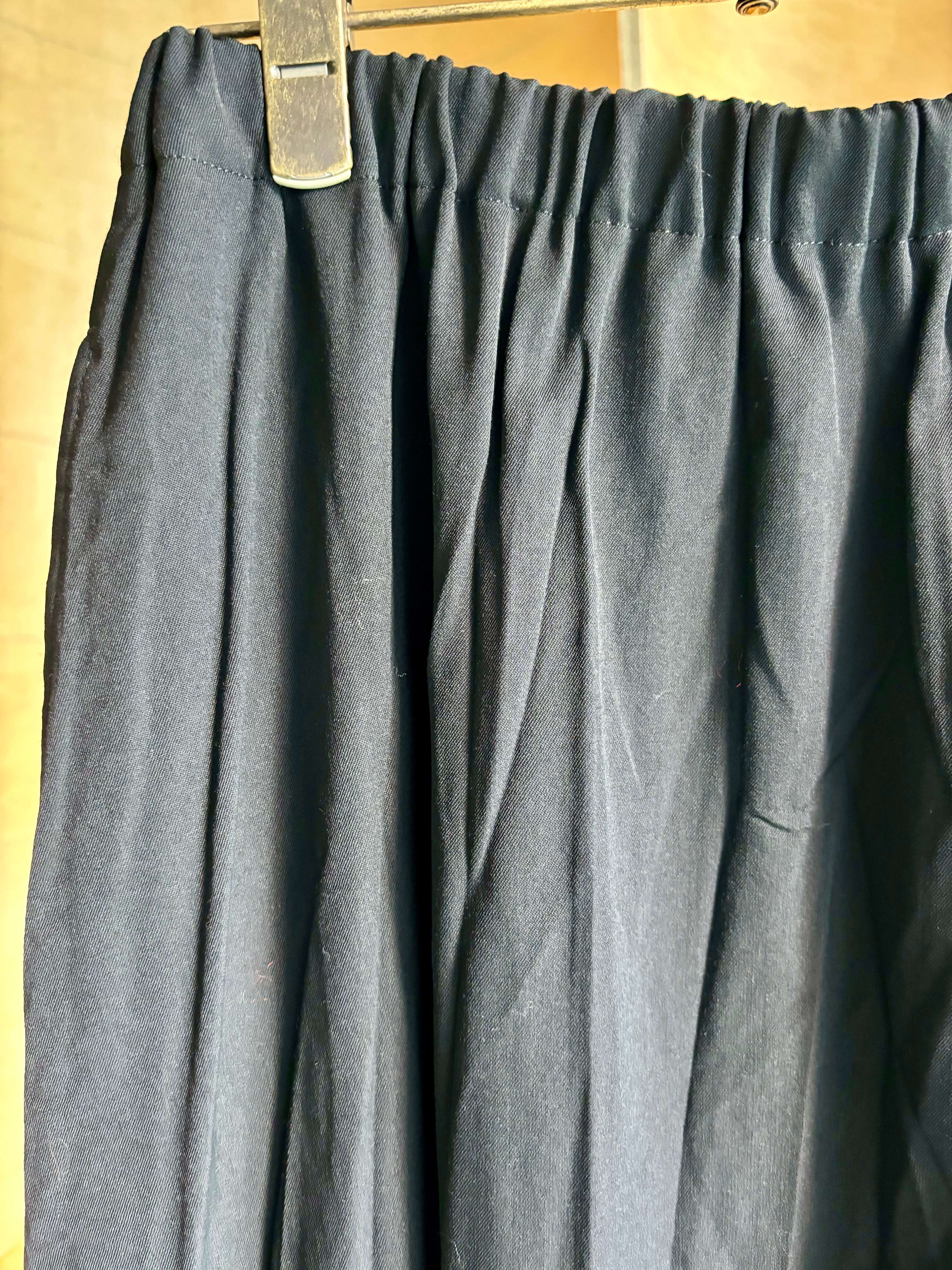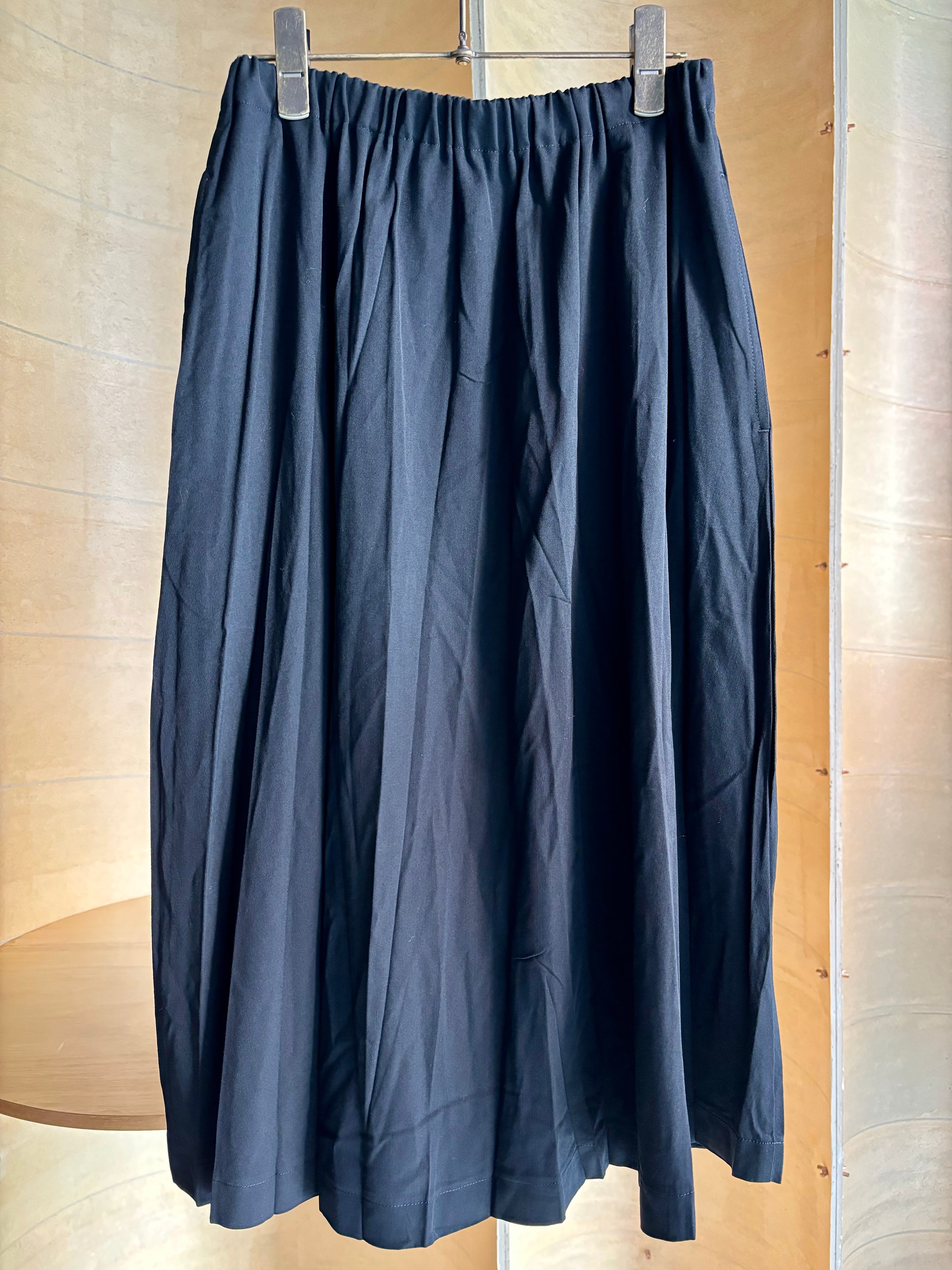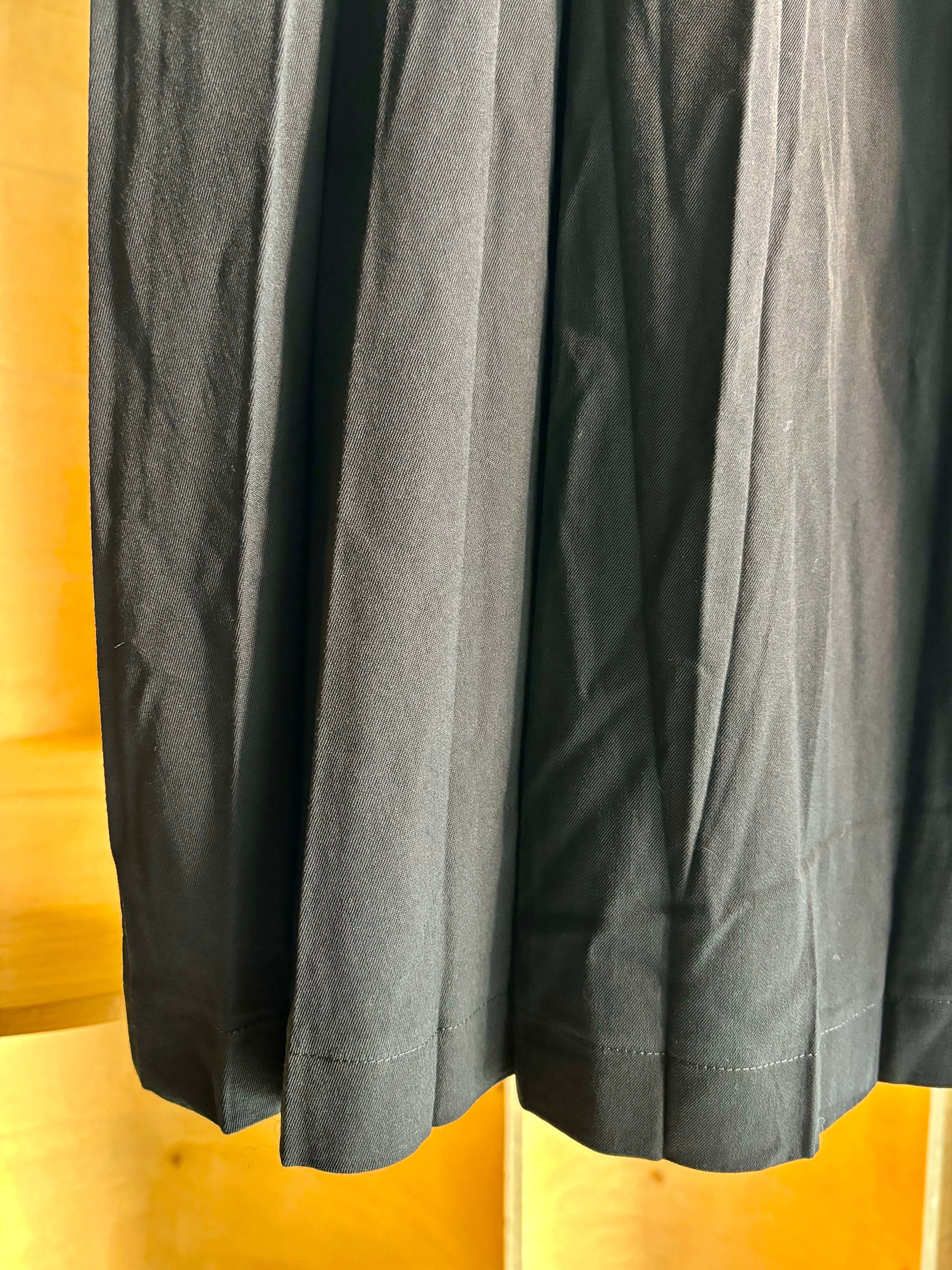 ランダムなプリーツ加工が施された製品プリーツスカート。一見シンプルなデザインですが、そのプリーツの美しいシワによって動くたびに優雅なシルエットが新鮮です。ウールギャバ素材のため、保温性にも優れ、真冬の寒い日でも暖かさをキープできます。